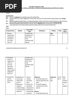 Pengembangan silabus mulok ( bahasa jawa) kelas iv semester 2 oleh syukur, s.pd dasar penyususnan silabus silabus ini disusun berdasarkan kurikulum mata pelajaran muatan lokal (bahasa jawa) untuk jenjang pendidikan sd/sdlb/mi negeri maupun swasta provinsi jawa.